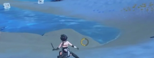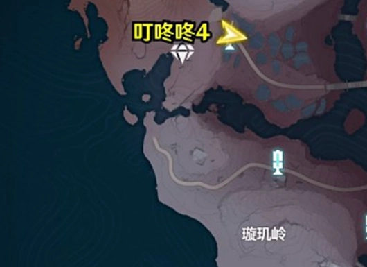 2、朝着小地图左下角方向移动,在肇始之台周边的海滩有一定概率刷新出叮咚咚。