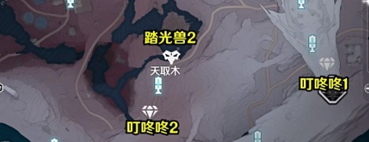 2、朝着小地图右上角的方向移动,在天取木周边的水潭处会刷新出一只踏光兽。