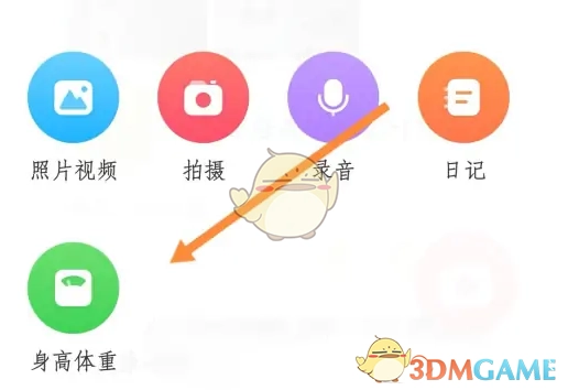 2. 点击之后,页面下方会弹出菜单,在下方菜单里点击【身高体重】,具体可参照图示。