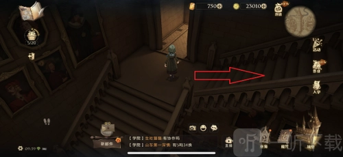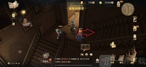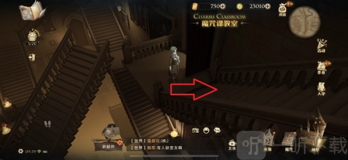 4、途经魔咒课教室,朝着右上方向的楼梯行进。