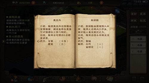 3、软筋散解药自己炼制交给裘啸天,额外获得1气引术(一般内功)。