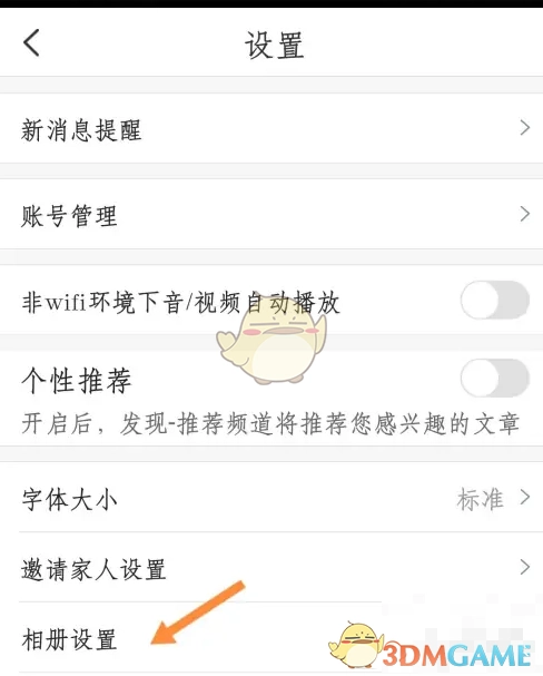 2、于页面里点击【相册设置】