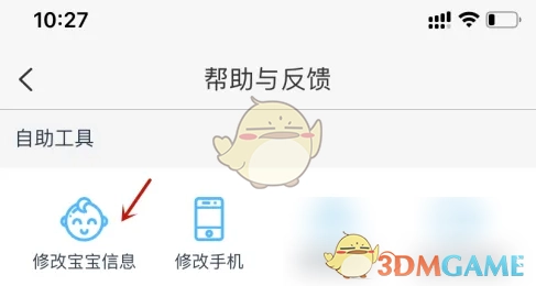 1. 在掌通家园的帮助与反馈板块里,点击进行宝宝信息的修改。