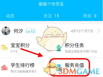 2. 打开“我的掌上家园”菜单,点击“服务充值”选项。