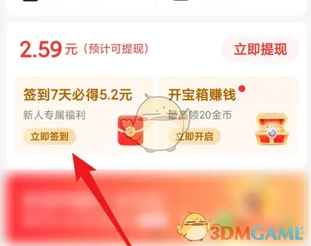 2. 进入“我的”界面,随后点击“立即签到”按钮,具体位置参照图示。
