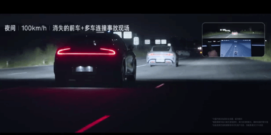最新的视频演示了在夜间以100km/h行驶时,遇到“前车消失+多车连环相撞事故现场”的情况,小米AES系统会采取怎样的应对措施。