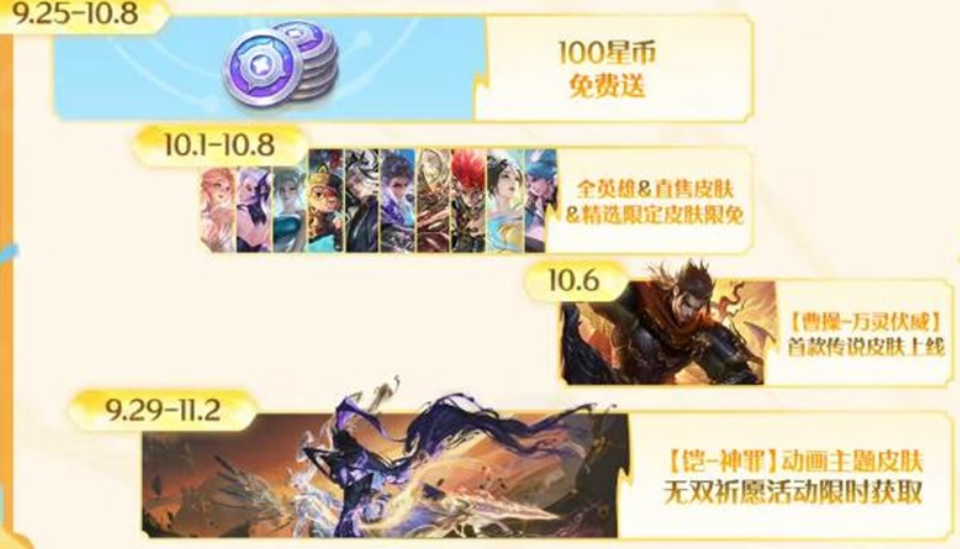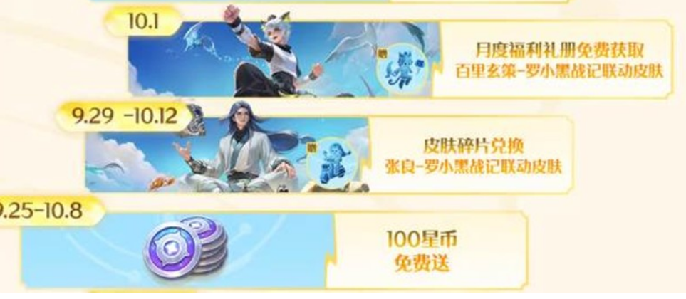 100星币免费领:9月25日到10月8日期间,只要登录游戏就能获得100星币,可用来兑换更多游戏内的物品。