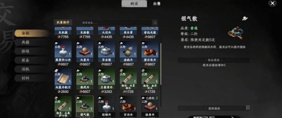 想要通过服用丹药提升悟性的玩家,可前往寻找NPC柯兆阳,从他那里能购买到亦夜丹与银气散这两种悟性丹药。其中,亦夜丹可提升7点悟性,银气散同样能提升7点悟性。尽管这些丹药的售价稍高,不过其提升效果稳定可靠,比较适合具备一定经济条件的玩家选择。以上便是提升悟性的第三种方法。