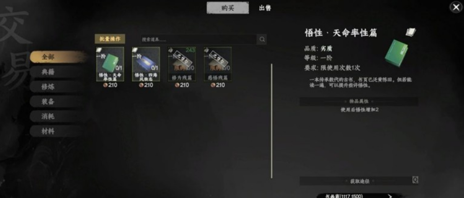 玩家想要提升悟性,可以去各大城镇的书画商人那里购买《悟性天命律性篇》这类书籍。每本这样的书能增加2.5点悟性,而且价格不算贵,很适合游戏前期用来过渡。