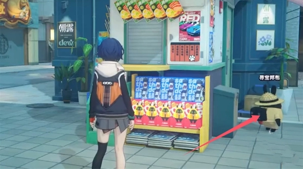 2、紧接着打开地图,朝着六分街报刊亭的方向进发,在报刊亭的右后方寻觅到一个寻宝邦布。