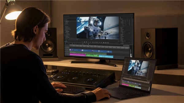 其中RTX 5090独立显卡配备24GB GDDR7大容量显存,依靠高达1824 TOPS的GPU AI算力实现体验升级与画面逼真呈现,助力用户快速处理4K、8K、12K分辨率的创作任务并高效导出项目文件;借助光线追踪核心,能够高效构建并渲染复杂场景,提升预览速度,打造更流畅高效的动画制作流程;依托第9代NVIDIA视频编码器,在DaVinci Resolve、Adobe Premiere Pro等应用中,通过AI驱动特效快速导出视频,为影片的高效制作持续赋能。
