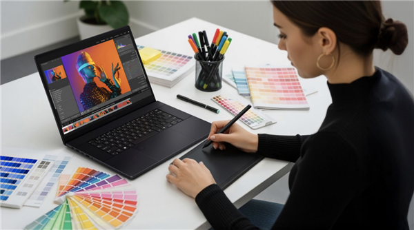 华硕在机身C面集成的创意旋钮,深度适配多款创作软件,只需指尖轻轻旋转,就能完成笔刷大小调节、图层不透明度修改等超70项快捷操作,不仅操作精准快速,还能显著提升创作效率。