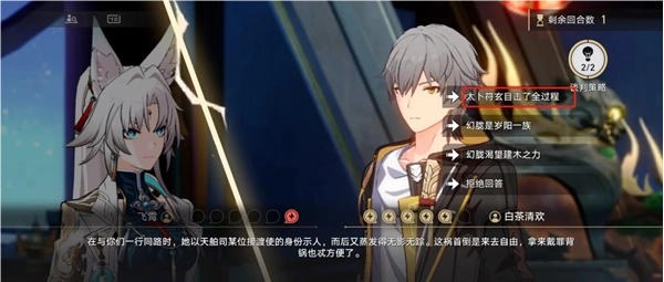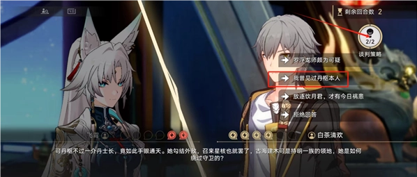 2、第二回合:选择“我曾见过丹恒本人”,先在谈判策略中选择“情绪调动”,之后再做选择,就能直接谈判成功。