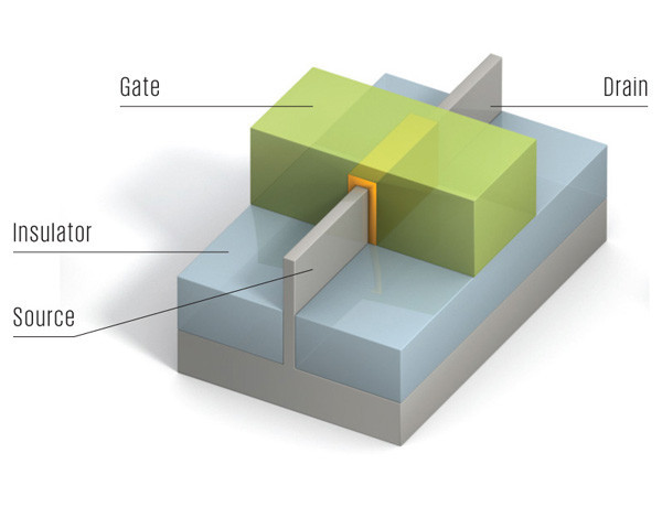 FinFET晶体管中,沟道水平排列,栅极三面环绕,看起来很像鱼鳍,因此叫作“鳍式场效应晶体管”。