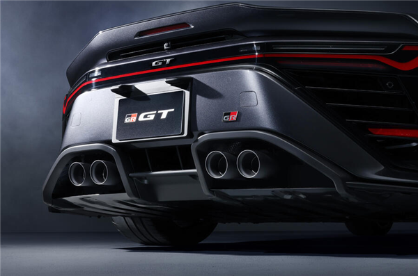 车尾配备了贯穿式刀锋尾灯,红色灯带呈现出锐利的折线造型,与前脸大灯的犀利风格形成完美呼应。尾部中央镶嵌着“GT”标识,旁边搭配GR专属徽章,进一步强化了车型的身份感与辨识度。再加上双边共四出的圆形黑化排气设计,整体营造出一种极具威慑力的运动氛围。