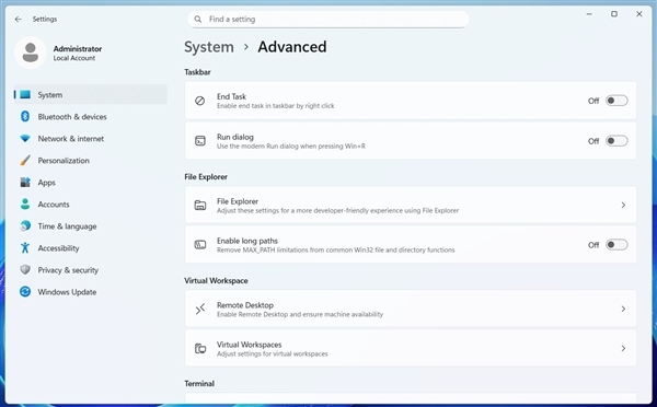 若用户希望启用新版本,需进入“设置”>“系统”>“高级设置”完成切换操作。微软将全新的“运行”功能设置为可选的“高级设置”选项,其目的并非单纯为了应用圆角设计或实现界面风格统一,而是旨在引入全新的功能特性。