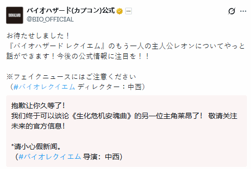 随后生化危机官方发文表示:“抱歉让你久等了!