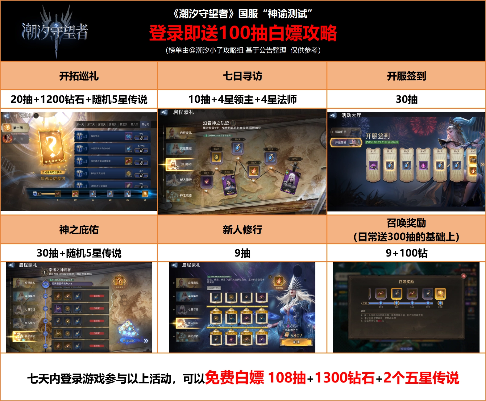 潮汐守望者国服开启测试,想必各位指挥官已踏入泰亚之地,展开征程。官方自然也准备了诸多福利,简单汇总一下,约有100抽的福利。下面就为大家带来《潮汐守望者》100抽免费获取福利攻略,各位快行动起来吧!