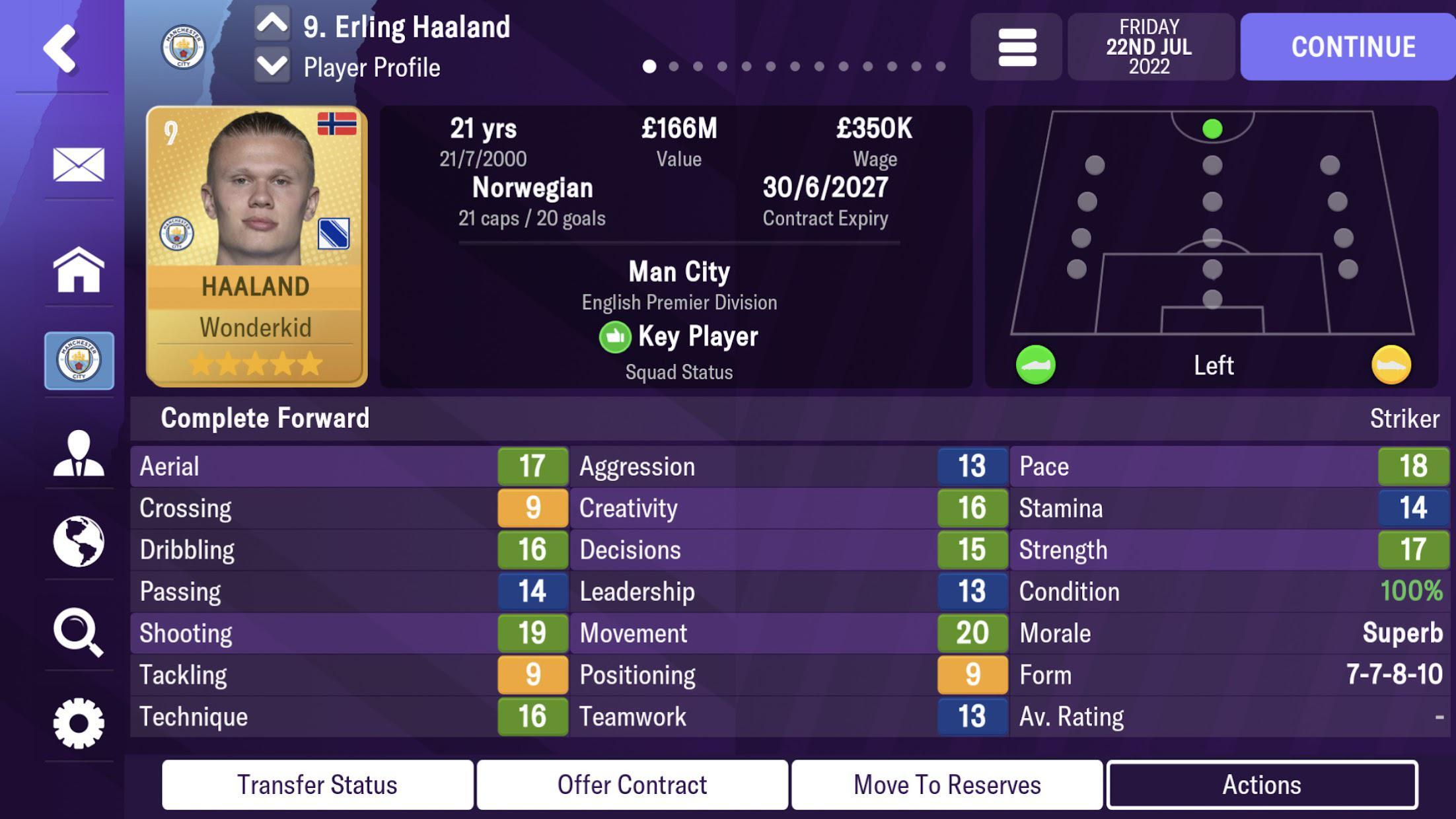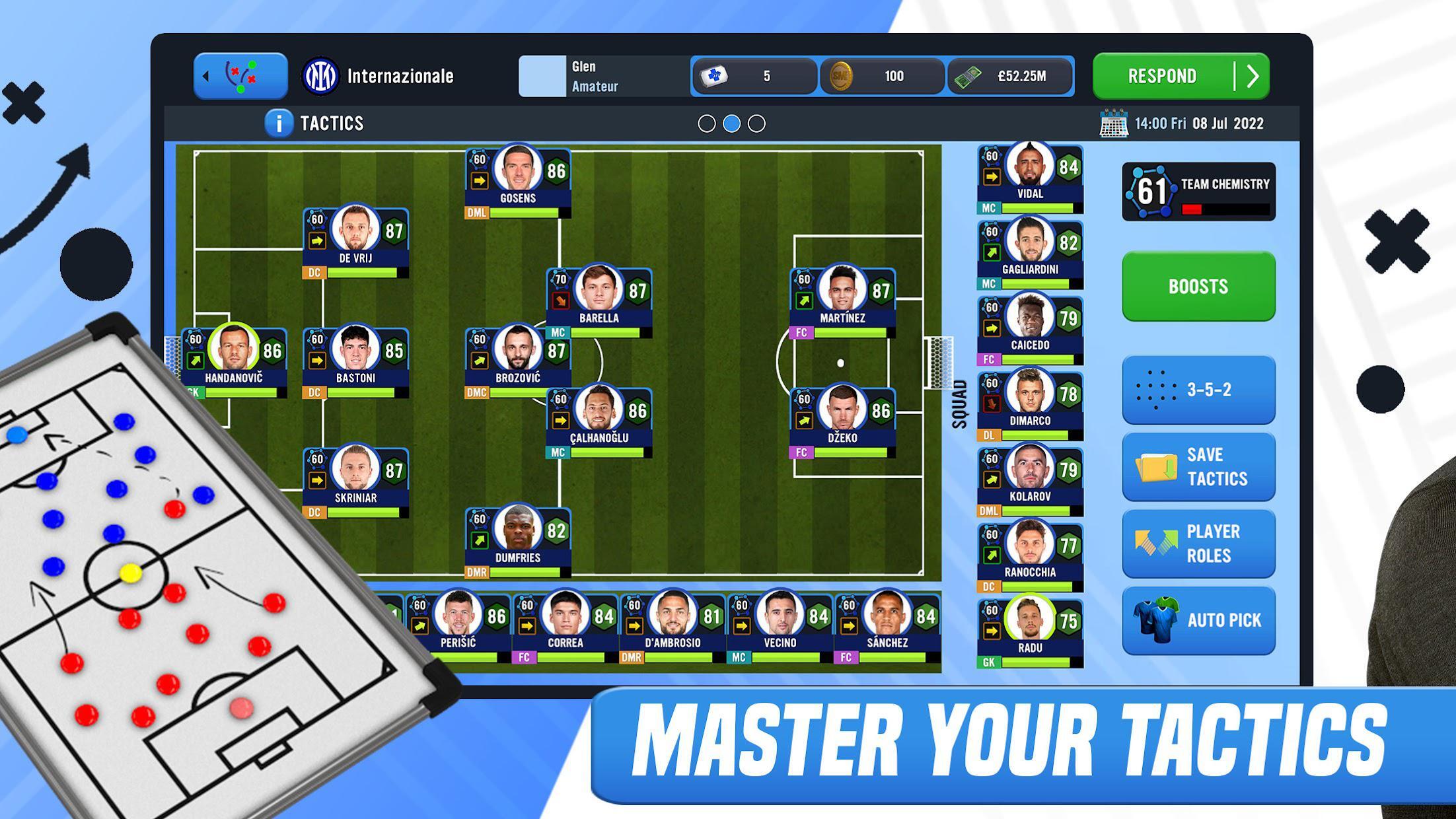 《足球经理2022》是一款3D足球经理游戏!在游戏里,你会化身顶级足球经理,率领自己选定的俱乐部驰骋赛场,检验管理能力并打造专属的终极球队。游戏涵盖全球33个国家和地区的800多家俱乐部可供挑选,让你的足球经理生涯充满挑战。作为经理,你要全权负责俱乐部的各项事务:挑选最强首发阵容、制定科学训练计划、升级俱乐部设施、履行主席职责、运作球员转会、分配球衣号码,还要设计球队战术体系。
