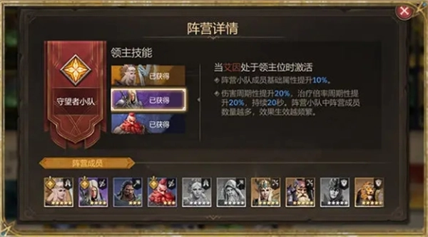 有一部分英雄是它所在阵营的领主,这些英雄都有着自身的领主技能,在队伍内编入领主英雄,同阵营成员都会获得加成效果。